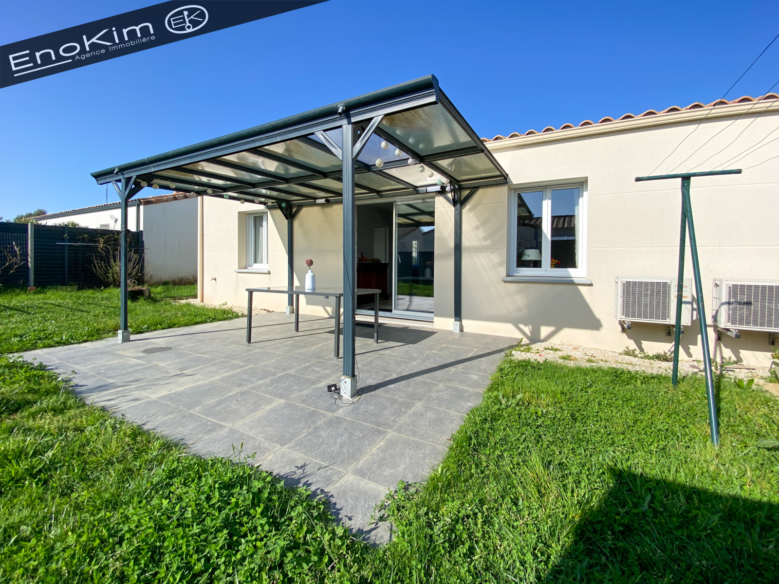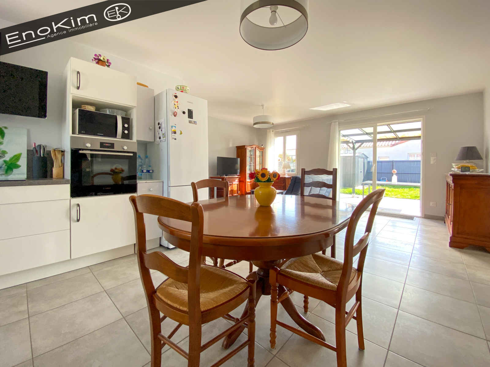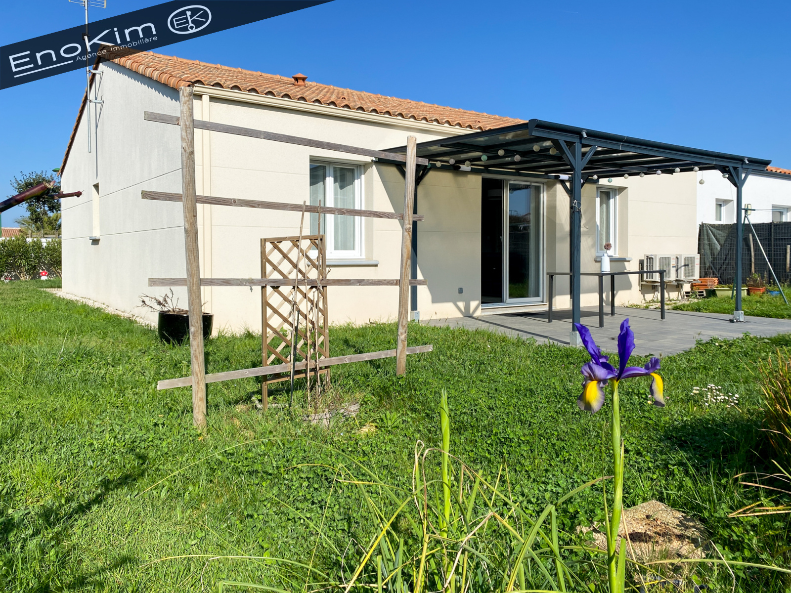 Ravissante maison de 72 m² de 2019, composée de deux chambres avec placard, une salle d'eau et un wc séparé. La cuisine est ouverte sur la pièce de vie qui donne sur le jardin.
